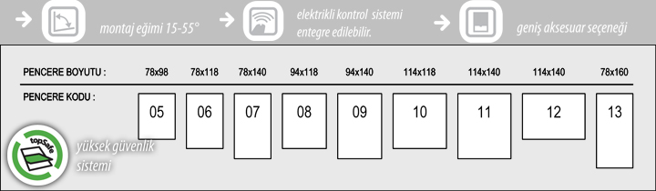 Çift Açılım ve Pivot Fakro Çatı Penceresi Mevcut Ölçüleri