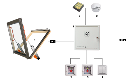 Fakro duman tahliye pencereleri model seçeneklerine bağlı olarak acil kontrol ünitesi, havalandırma anahtarı, alarm butonları, duman ve yağmur sensörü gibi özelliklerle kullanımlarda işlevselliğini ön plana çıkarmaktadır. Elektrik kablosu veya güç kablosu ile çalışabilecek model seçenekleri tehlike anında otomatik açılım gösterebilecek niteliklerle donatılmıştır.