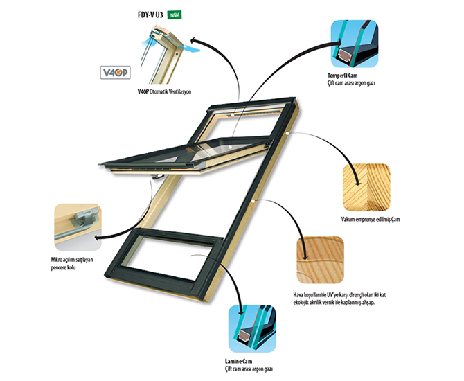 Güvenlik açısından fakro yüksek pivot pencereler alt pencere kanadında açılmaz bir özellik göstermekte ve harici cam lamine levha kullanılmaktadır. Mekanlarda dikey kombinasyon ihtiyacını ortadan kaldıran bu sayede daha büyük cam alanları sunarak gün ışığından oldukça etkin yararlanılmasını sağlamaktadır. Enerjiden tasarruf sağlayacağınız pencere sistemi iki aşamalı mikro havalandırma özelliğiyle de çatı katlarının daha ferah ve havadar olmasını sağlamaktadır. Farklı ve özel ihtiyaçlarınızda mimari tasarımın modern çizgilerini mekanlarınıza yansıtabileceğiniz ve pratik kullanım olanağı bulacağınız fakro yüksek pivot pencereler pek çok işlevsel özelliğiyle kullanım konforunuzu ön plana çıkaracaktır. Firmamızla iletişime geçerek konusunda uzman personellerimizden alacağınız bilgi ihtiyaçlarınızda hiç vakit kaybetmeden sipariş vermenizi sağlayacaktır.