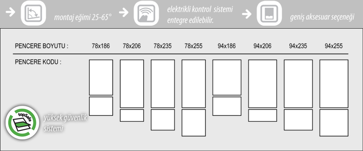 Sabit alt orta kayıt sistemi ile çatı katlarında daha geniş ve ferah ortamlar sağlatan fakro yüksek pivot pencereler sonradan entegre edilebilen elektrikli kontrol sistemiyle çok daha işlevsel biçimde kolay ve pratik kullanım olanağı sağlamaktadır. perde, jaluzi, sineklik, gölgelik ve panjur da eklenebilen pencere sistemleri firmamız farkıyla uygun fiyat avantajlarında zevk ve tercihlerinize sunulmaktadır. iki kat vernikleme yapılan ürün uzun ömürlü kullanımlarınıza uygun olarak kaliteli malzemelerden imal edilmiştir. Şık ve gösterişli kol tasarımları ile farklı ölçülerde mekanınıza uygun olarak tasarlanan pivot özellikli pencerelerde iki pencere kanadı tek pencereye yerleştirilmiştir. Üst pencere kanatları pivot pencere özelliğinde açılım sağlamakta dönme ekseni pencere merkezinde yer almaktadır. Bu sayede uzun boya sahip olan kişiler bile rahatlıkla açık pencere kenarına yaklaşabilmektedir.