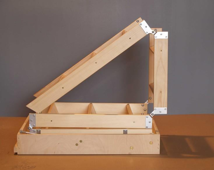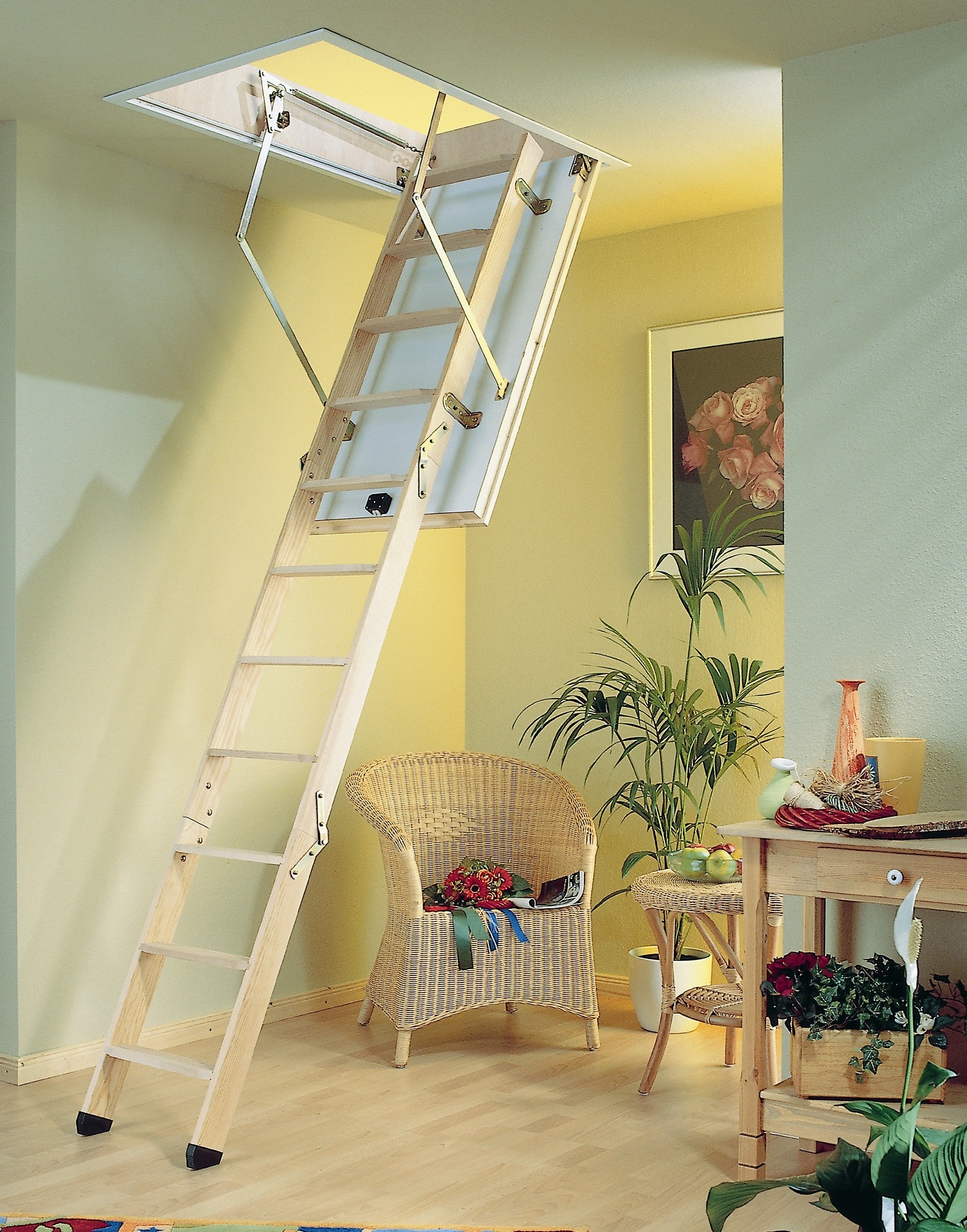 Yapılara sonradan eklenerek tavana yerleştirilen bir kasaya oturtulan merdiven 3 veya 4 bölümde katlanır şekilde kullanım dışı olduğu zamanlar katlanarak tavana kaldırılabilmektedir. Kapalı konumda tavanda yalnızca kapak kısmının görüneceği ürünlere mekanlarınıza şık ve estetik bir görünüm de kazandırabilirsiniz. Dekoratif cila gerektirmeyen kapak kısmı için zevkinize uygun olarak farklı renk ve modellerde tercih yapma şansına da sahipsiniz.