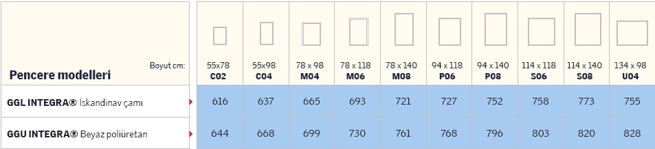 Velux Çatı Penceresi İNTEGRA Ölçüleri